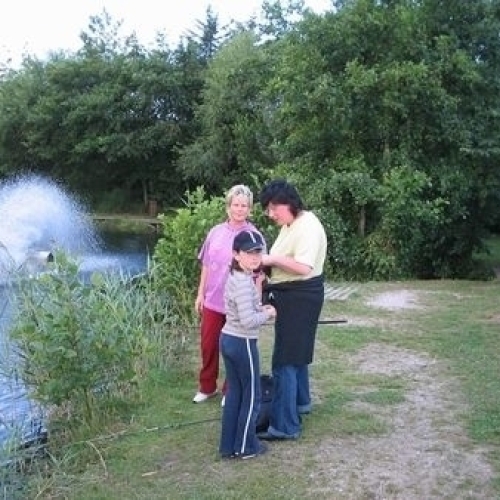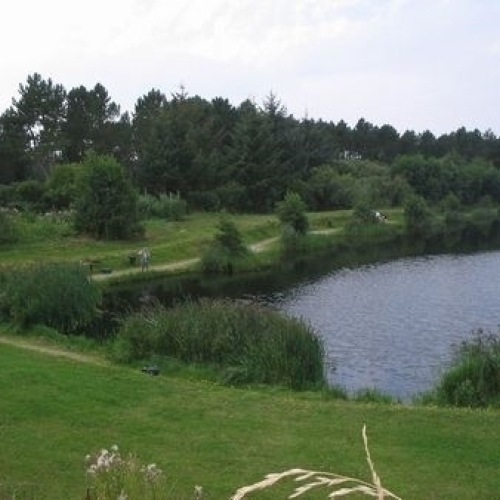 The fishing park covers 5-6 hectares and is located just 2.5 km from Løkken along the main road to Aalborg. It is a uniquely beautiful natural area with proximity to the North Sea, where two large lakes with fine sandy bottoms are connected by a wide canal. The smaller one, called the children's and family lake, is reserved for this group during the high season (fly fishing is not allowed here). The entire area is situated in a valley, surrounded by a high embankment and forest. Due to this location, the weather around the lakes is always "good," and it remains windless.